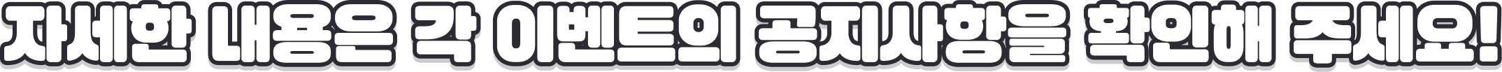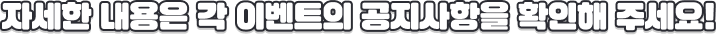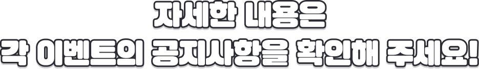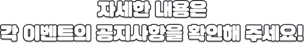 • 별도 안내 없이 이벤트가 조기 종료 될 수 있으며, 자세한 내용은 각 이벤트 공지를 확인해주세요.